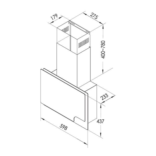 - Розміри витяжки: приблизно 60 x 47 x 23,5 см (ШxВxГ)