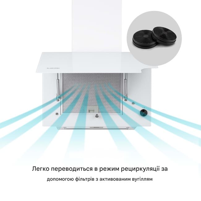 Вхідні жирові фільтри можна легко мити в посудомийній машині. Перехід на режим рециркуляції також є простим завдяки двом фільтрам з активованим вугіллям.