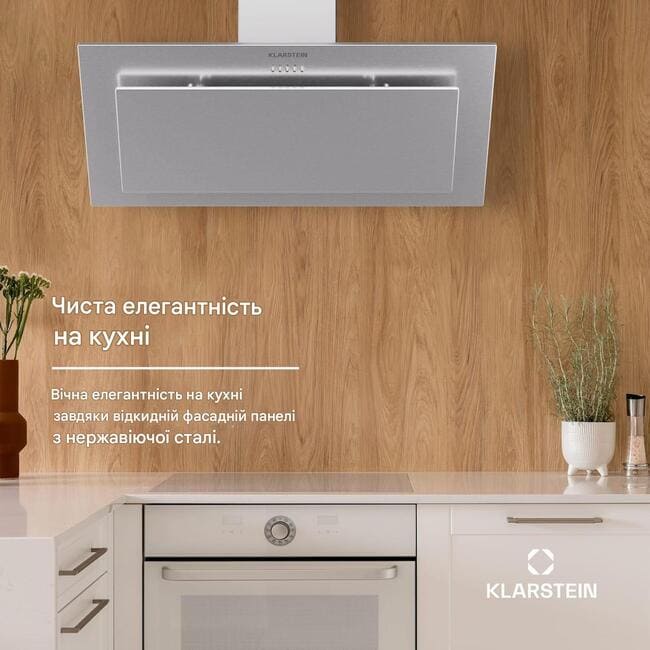 Витяжка Klarstein Athena 90 поєднує в собі розкішний дизайн і виняткову функціональність. Завдяки продуктивності витяжного повітря 300 м³/год і класу енергоефективності A++, він встановлює нові стандарти продуктивності та екологічності. Елегантний дизайн із матової нержавіючої сталі надає вашій кухні нотку розкоші та довговічності. Просте керування за допомогою кнопки та два потужні світлодіодні лампи перетворюють приготування їжі на задоволення. Витяжка Klarstein Athena 90 не тільки створює візуальні акценти, але й пропонує потужне та енергоефективне приготування їжі. Відкрийте для себе чудове поєднання дизайну та функціональності для ваших кулінарних творінь!