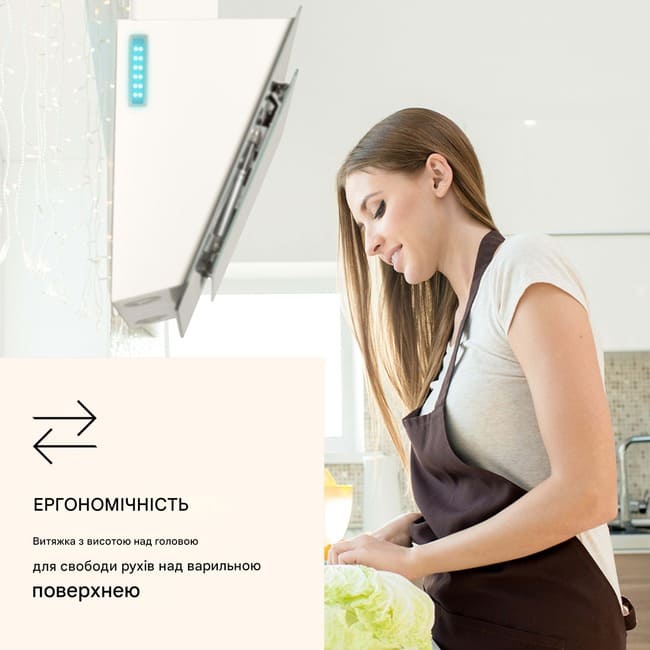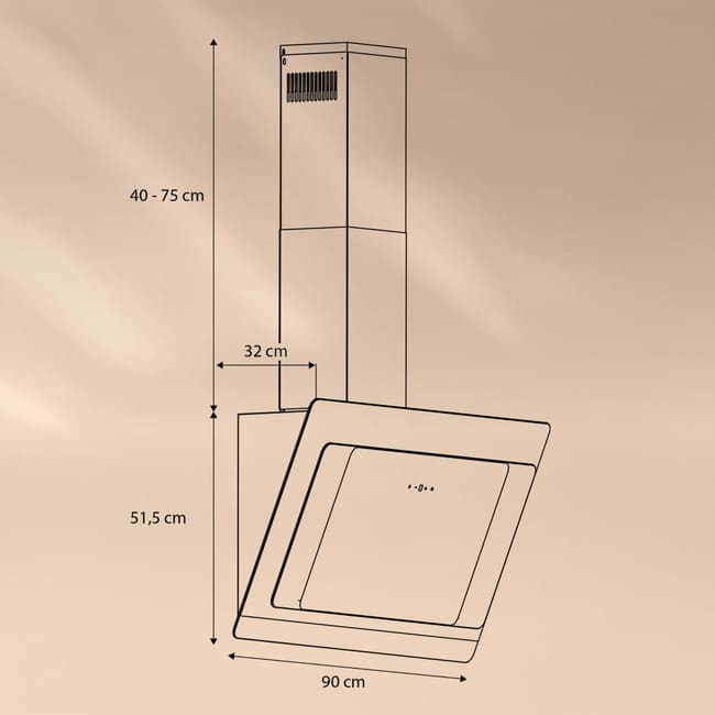 - Розміри витяжки: приблизно 89 x 58 x 33,5 см (ШxВxГ без обшивки димоходу)