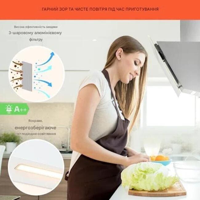- Привертає увагу на кожній кухні: витяжка в незмінному верхньому дизайні з місцем для зберігання