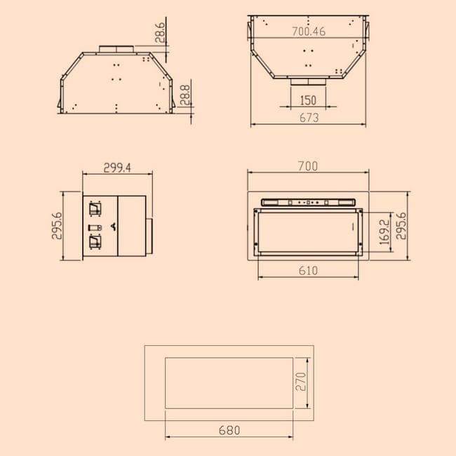 Розмір монтажного отвору: приблизно 68 × 27 см