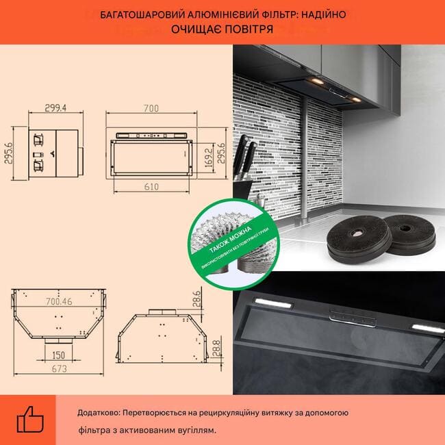 - Алюмінієвий жировий фільтр (можна мити в посудомийній машині)