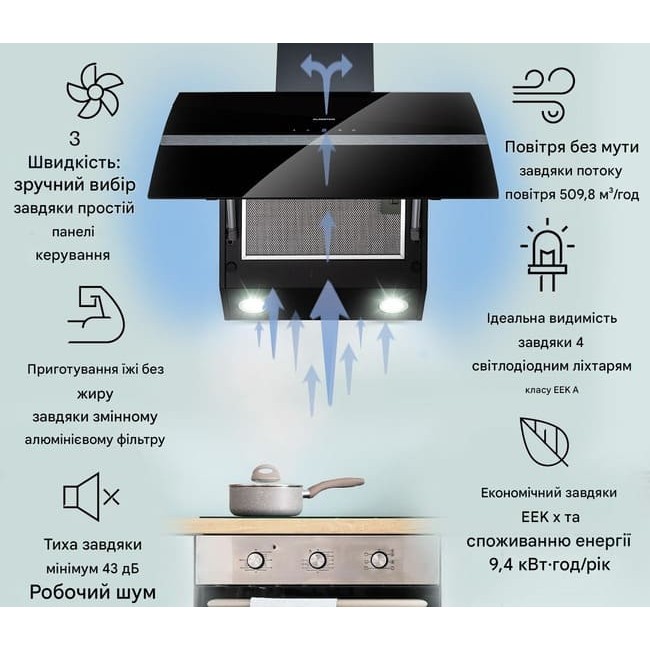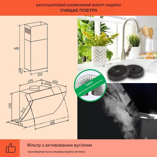 - алюмінієвий жировий фільтр (можна мити в посудомийній машині)