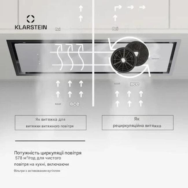 - Попередньо обладнане для режиму рециркуляції, включно з фільтром з активованим вугіллям.