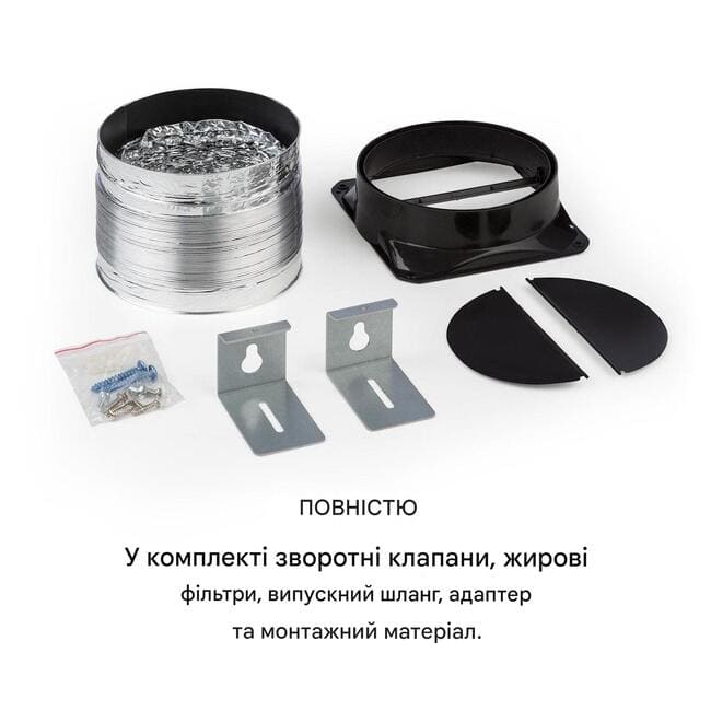 - Перемикач потужності витяжного повітря (низька, середня, висока)