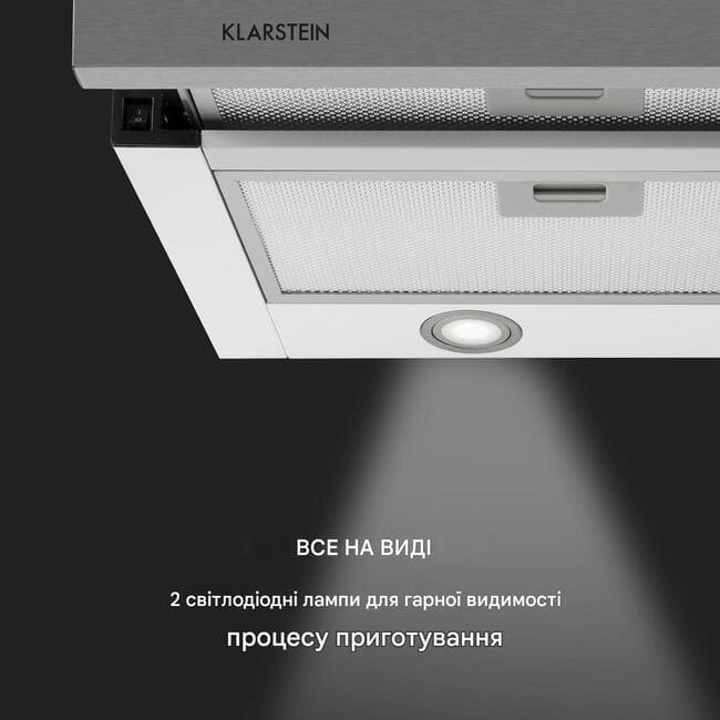 Універсальна, потужна та неймовірно компактна: витяжка з плоским екраном Klarstein Mariana 90 із розумним висувним механізмом може забезпечити кухню без туману в будь-який час.