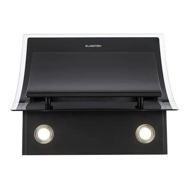 - БЛАГОРОДНИЙ ДИЗАЙН: загнутий всередину фасад із безпечного чорного скла з кришкою димоходу з нержавіючої сталі