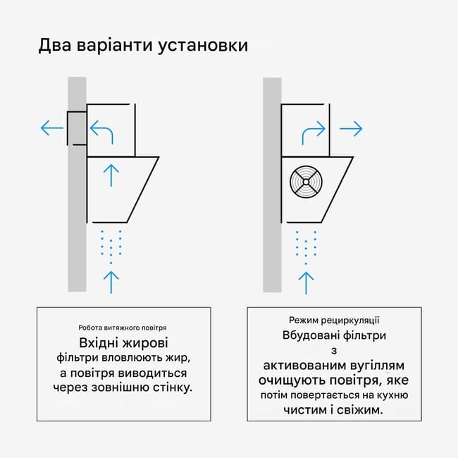 Ця витяжка для кухні забезпечує стабільну циркуляцію повітря та ефективне видалення пари, запахів і жиру: