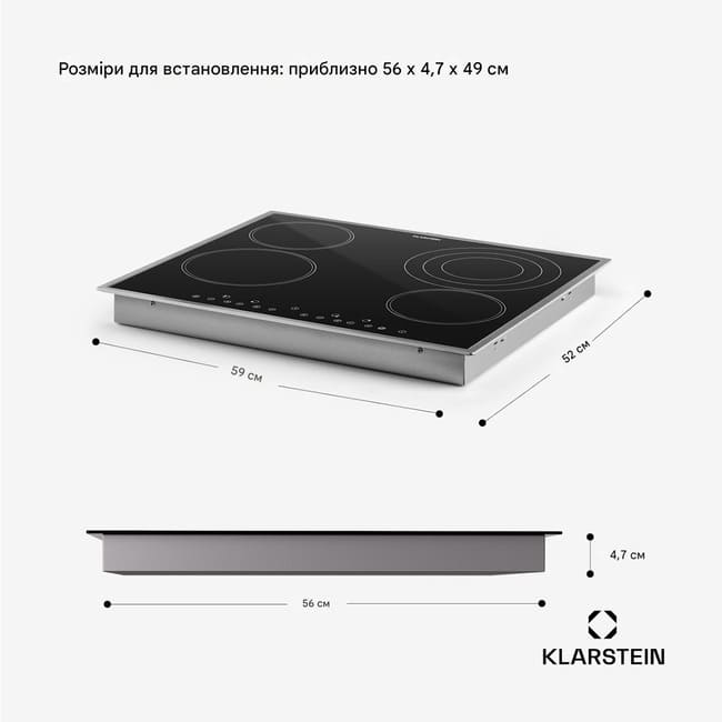 - Вбудована склокерамічна варильна поверхня: для установки в кухонну шафу, не є самостійним приладом
