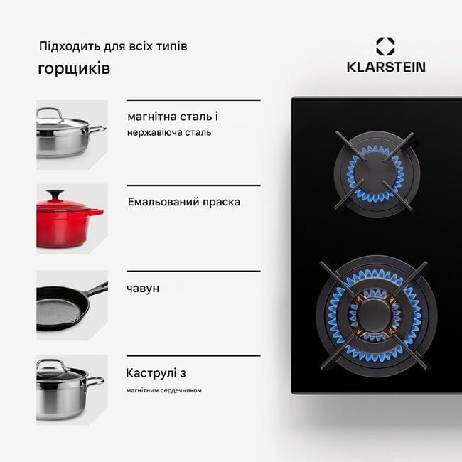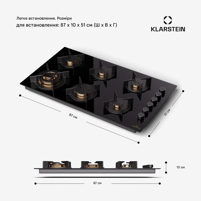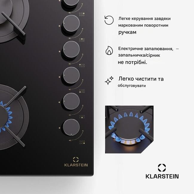 Після приготування їжі газову варильну поверхню Klarstein легко чистити завдяки загартованій склокерамічній поверхні чорного кольору товщиною 10 мм – елегантна та проста в очищенні.