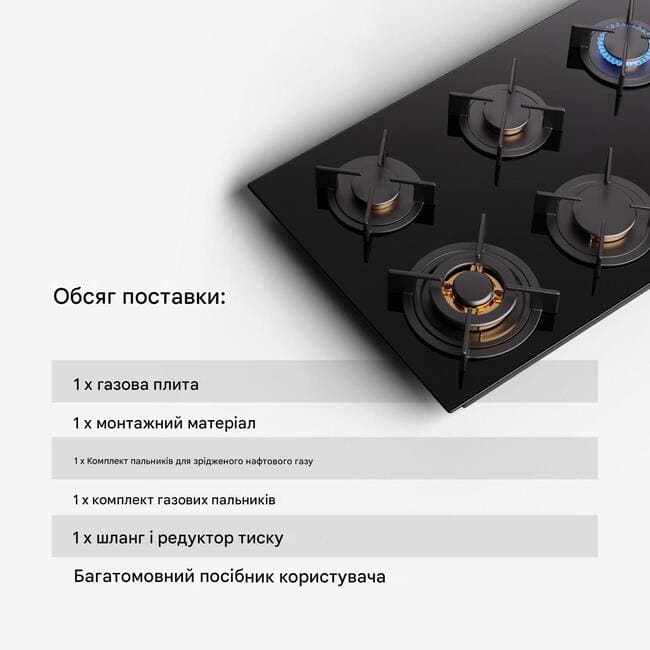 - Діаметр допоміжного пальника: приблизно 5,5 см (Ø)
