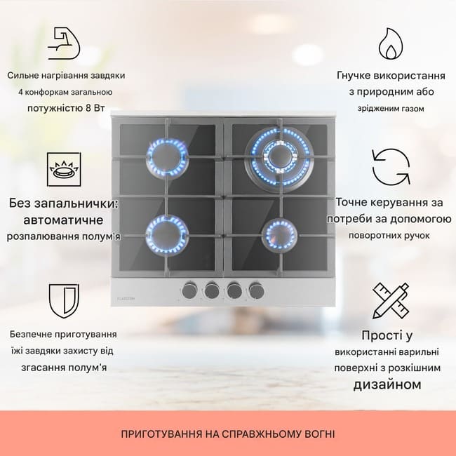 Відсутність вогню для ефективного та екологічно чистого приготування їжі: газова плита Klarstein Alchemist надає цю можливість на вашій кухні. Відчуйте себе зірковим кухарем, який готує ваші улюблені страви, і порадуйте не лише свій смак, а й своїх гостей. Газ не тільки ефективніший і екологічно безпечніший, але й більш керований і, отже, практичніший, ніж приготування їжі на електриці.