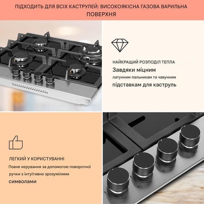 Діаметр звичайного пальника: прибл. 7,5 см (Ø)