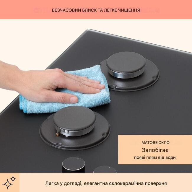 - Особливо елегантний завдяки легкому в догляді обробленому піскоструминним способом склу