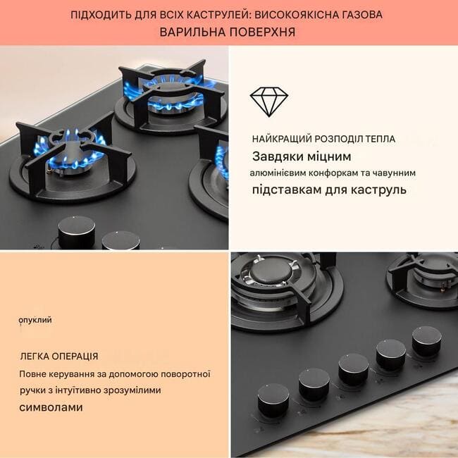 Той, хто багато готує, вважає за краще готувати їжу на газовій плиті. Газ не тільки більш ефективний і екологічно чистий, він також набагато легше контролюється і, отже, більш практичний для приготування їжі, ніж електрика. Газова варильна поверхня Klarstein Firetale тепер легко приносить цю можливість на кожну кухню.