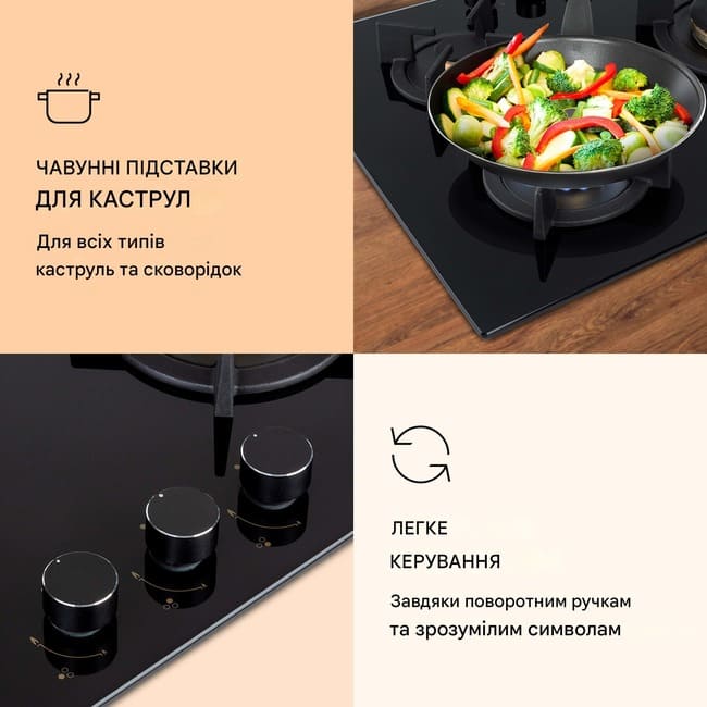 - Газова варильна поверхня з 3 конфорками