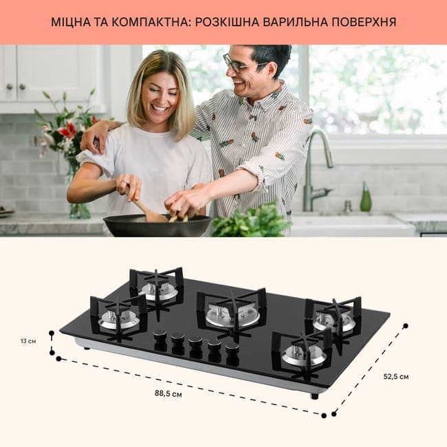 Після приготування їжі газову варильну поверхню при необхідності можна легко очистити: для цього вона має поверхню із загартованого керамічного скла, що легко миється, товщиною 6 мм. Він не тільки виглядає неймовірно елегантно, але й надзвичайно простий у догляді.