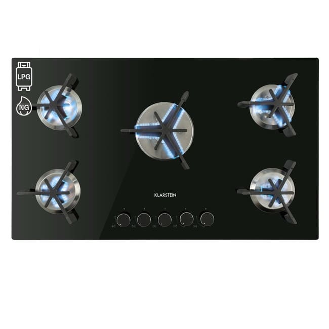 На компактній варильній панелі Klarstein Trifecta 5 є п’ять нових трикутних конфорок, які належним чином нагріваються з потужністю 3,2 кВт, 2,1 кВт і 3 x 1,15 кВт. Хрестики з міцного чавуну підходять практично для всіх типів посуду і завдяки тримачам для шпильок точно сидять над полум'ям і не перекидаються. Керування абсолютно інтуїтивно зрозумілим завдяки зрозумілим символам на великих ручках. Великою перевагою газових плит є те, що їх легко регулювати: подачу тепла можна регулювати знову і знову в процесі приготування. Зміни розміру полум’я безпосередньо впливають на зміни температури каструлі чи сковороди. Звичайно, ми звернули увагу і на безпеку печі: для її розпалювання не потрібен додатковий вогонь. Газове полум'я просто запалюється за допомогою електричного запалювання. Захист від зникнення полум'я перекриває подачу газу до пальника, якщо полум'я з будь-якої причини зникло.