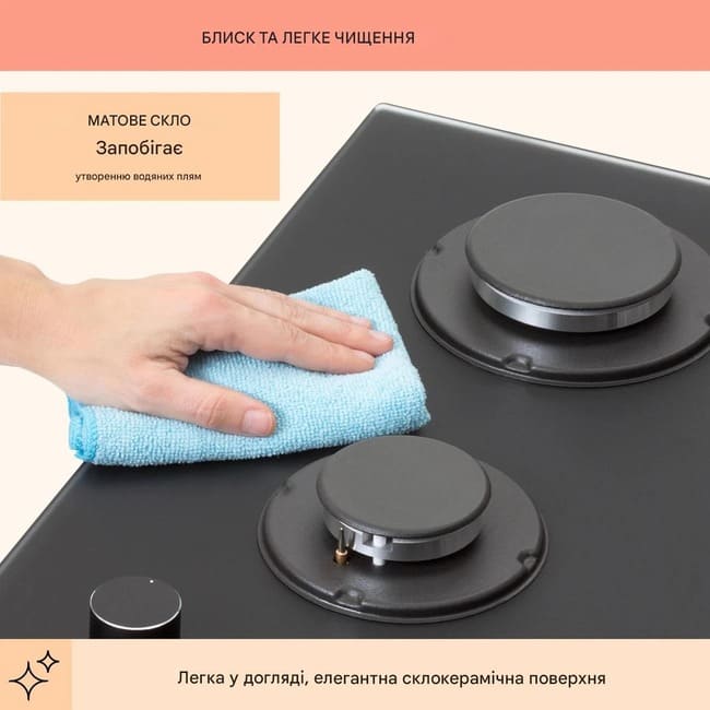 - Особливо елегантний завдяки легкому в догляді обробленому піскоструминним способом склу