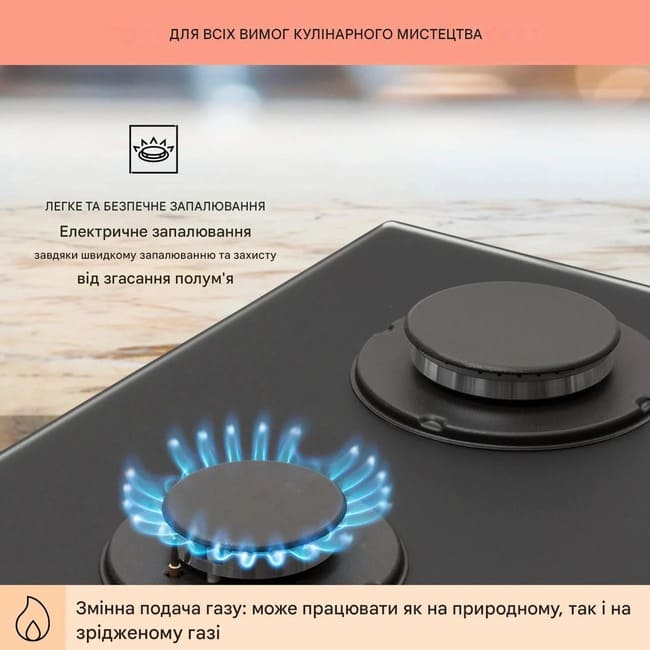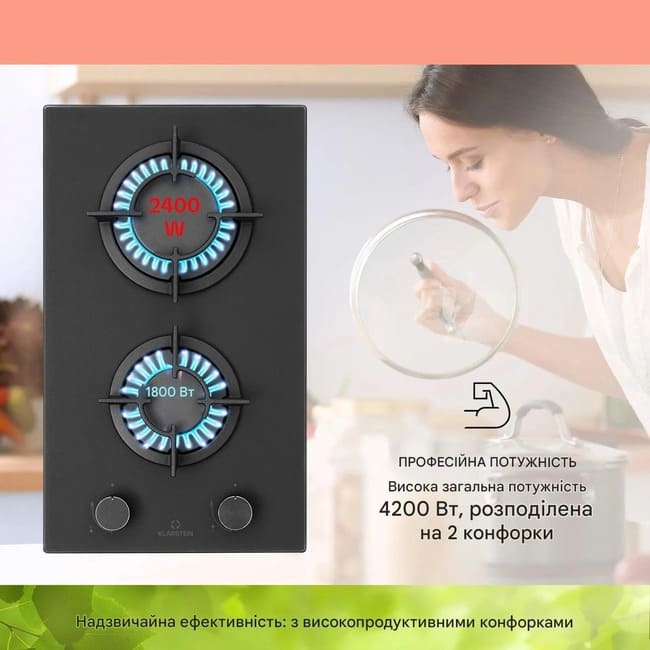 - потужна продуктивність завдяки потужному пальнику потужністю 2,4 кВт і звичайному пальнику потужністю 1,8 кВт