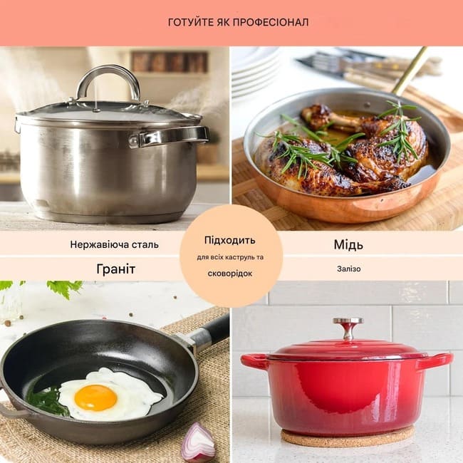 - Діаметр потужного пальника: приблизно 10 см (Ø)
