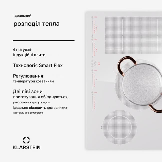 Технологія Smart Flex: автоматичне регулювання температури за допомогою руху посуду, вбудованого в ліву зону гнучкості