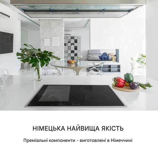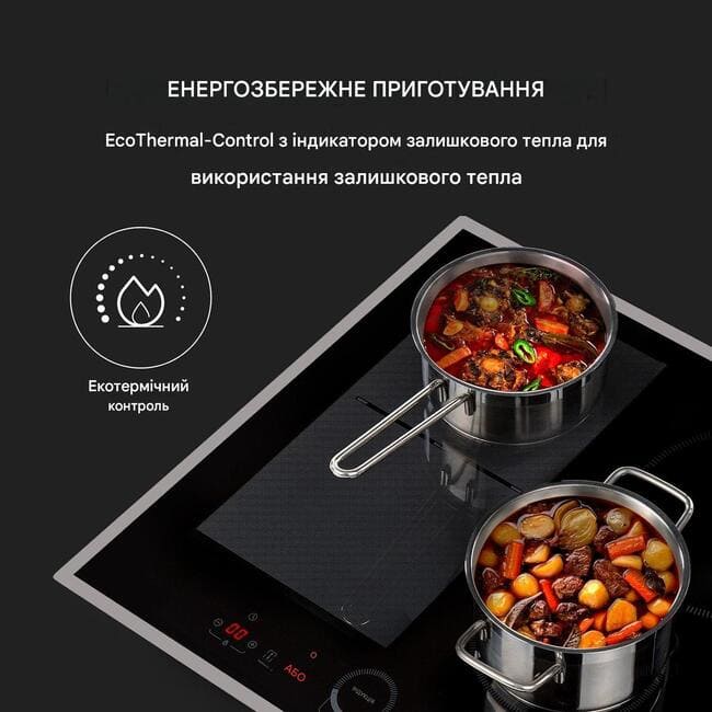 - Ліві конфорки можна комбінувати для гнучкого використання з розпізнаванням каструлі