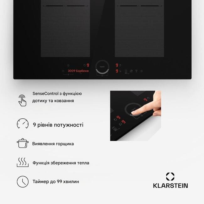 - 4 зони приготування: 20 x 20 см кожна