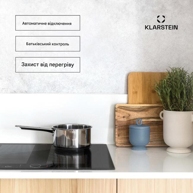 Просто більш гнучке приготування їжі: індукційна варильна поверхня Klarstein Delicatessa 70 Flex дозволяє оптимально використовувати простір з мінімальним споживанням енергії. Він поєднує технічні інновації з розкішним виглядом і надає кухні нового блиску завдяки своїй склокерамічній поверхні. Крім того, вбудована варильна поверхня пропонує високий рівень безпеки: завдяки захисту від перегріву, розпізнаванню каструлі, індикатору залишкового тепла, автоматичному вимкненню та блокуванню від дітей. Технологія VarioHeating flex zone дозволяє об'єднати дві варильні поверхні для створення однієї зони приготування.