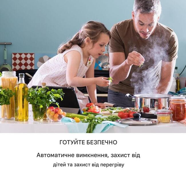 - Функція економії: потужність конфорки автоматично зменшується, щоб уникнути перевантаження