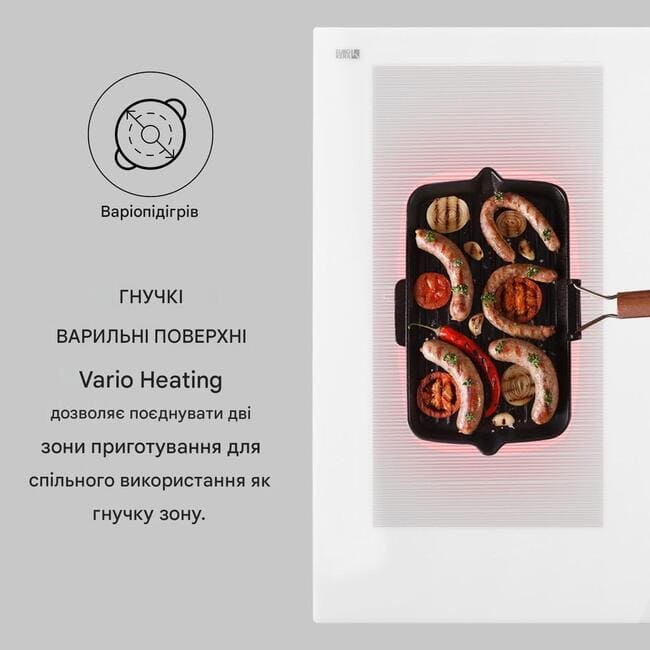 Гнучкі конфорки: VarioHeating для об’єднання двох конфорок для спільного використання як гнучкої зони