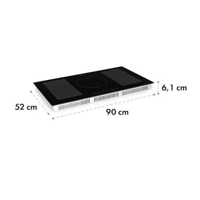 Klarstein Delicatessa 90 Flex вбудованої варильної пропонує п'ять варильних поверхонь для здійснення загальною потужністю макс. 7000 Вт, які розподіляються з 3 x 2000 Вт і 2 x 1500 Вт на окремі поверхні для приготування їжі та доводять вміст каструль і сковорідок до кипіння в години пік. Дві лівої та правої конфорки поєднуються з VarioHeating., щоб сформувати зону гнучкості. Завдяки розпізнаванню посуду він адаптується до розміру каструль, сковорідок або запіканок, розташованих зверху, у такий спосіб нагріваючи великий посуд, який не поміщається на одній плиті. Отже, Delicatessa 90 Flex споживає тільки ту енергію, яка підходить для каструлі, і, з іншого боку, дає змогу використовувати каструлю або сковороду практично будь-якого розміру. Усі окремі поля, а також гнучке поле можуть регулюватися окремо за їх продуктивністю й мати функцію ThermoBoost, за допомогою якої потужність для швидкого нагрівання до 3500 Вт знову збільшується. Klarstein Delicatessa 90 гнучкий трубопровід стек керамічну плиту легко керується з інтегрованою SenseControl сенсорною панеллю з сенсорним до слайдаконтроль потужності та цифровий дисплей. Так що ні ручки, ні ручки не ламають поверхню кухонного гарнітура. Крім потужності, для кожної варильної панелі можна запрограмувати таймер до 99 хвилин, який або вимикає варильну панель після закінчення встановленого часу або видає звуковий сигнал.