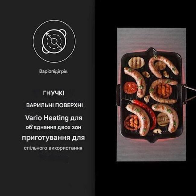 - Гнучкі варильні поверхні: VarioHeating для об'єднання двох варильних панелей для загального використання як flexzone
