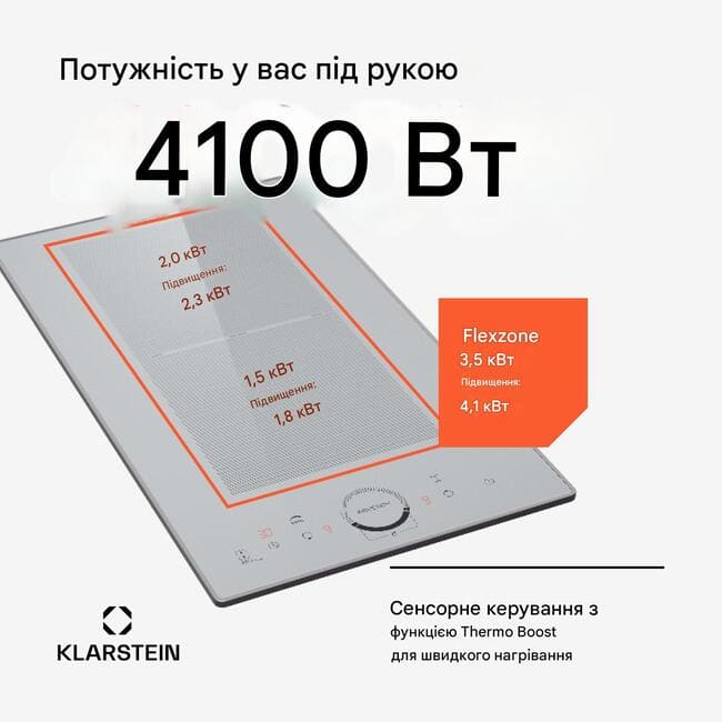 - Більше потужності: кожна конфорка з функцією ThermoBoost і індивідуальною потужністю до 1800 і 2300 Вт