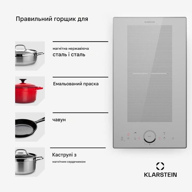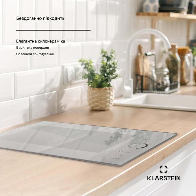 Візуально індукційна варильна поверхня Delicatessa Slim від Klarstein вражає своєю простою в догляді та елегантною склокерамічною поверхнею: варильна поверхня легко вписується в будь-яку кухонну гарнітуру - класичну чи сучасну.