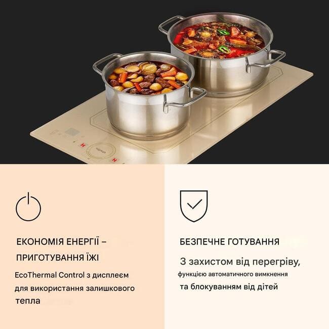 - Функція ThermoBoost : для 1800 і 2300 Вт на варильну поверхню