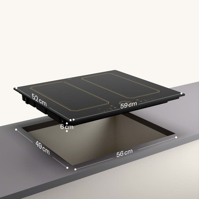 - Потужний нагрівання: чотири варильні зони, кожна по 2 x 1500/2000 Вт, загальна потужність 7400 Вт.