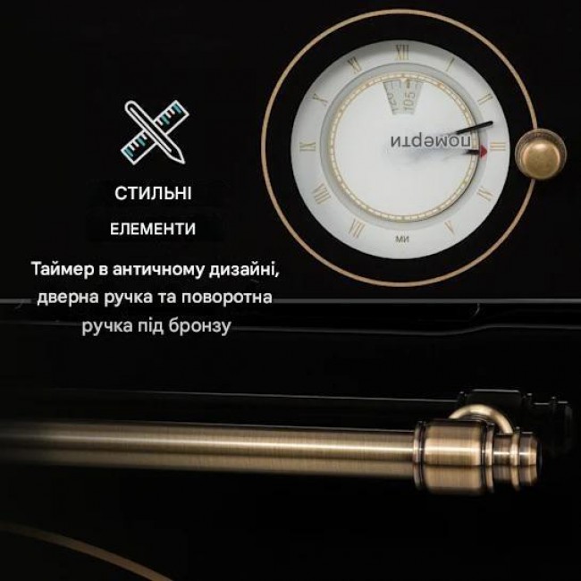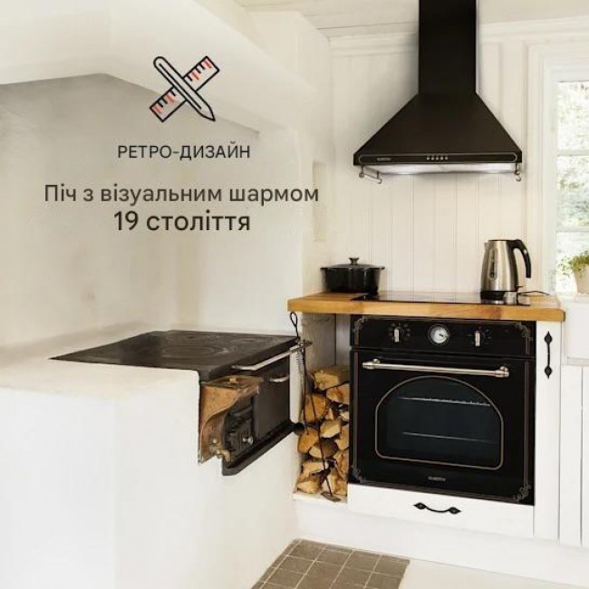 Вбудована духовка Victoria ретро дизайн 9 функцій 50-250°C чорний