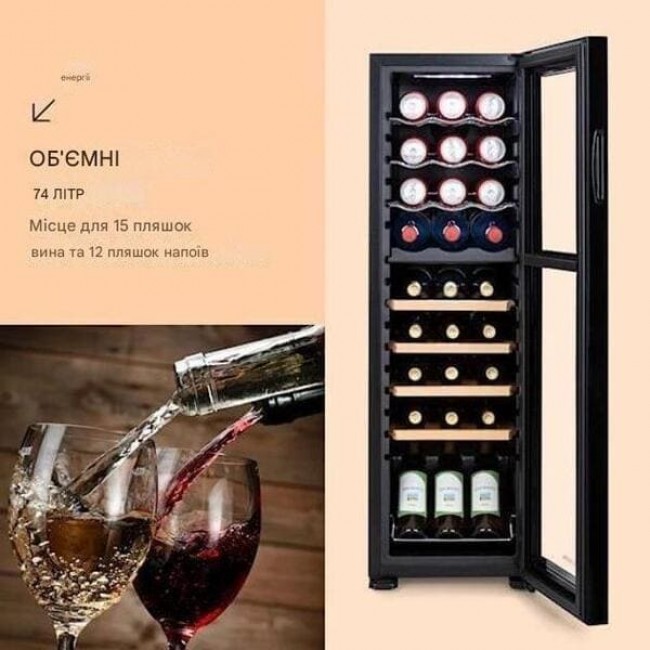 - Ємність (пляшки): 27 (стандартні пляшки вина 0,75 л)