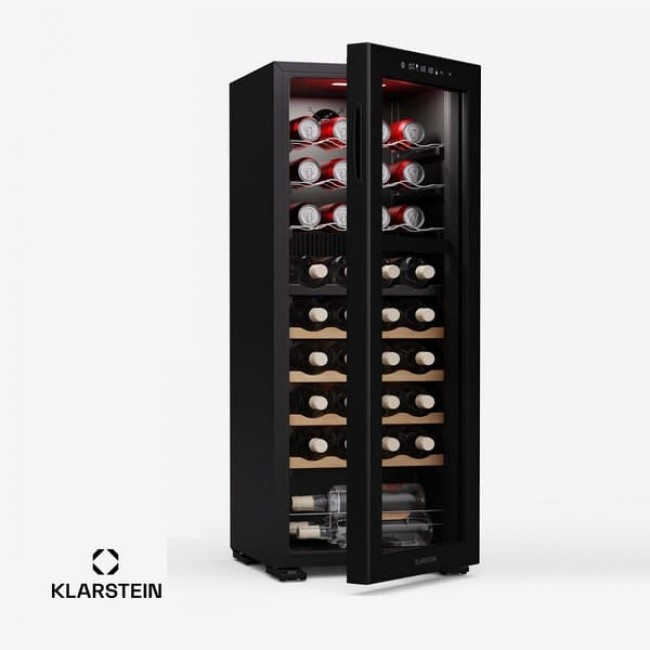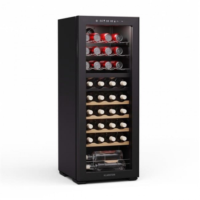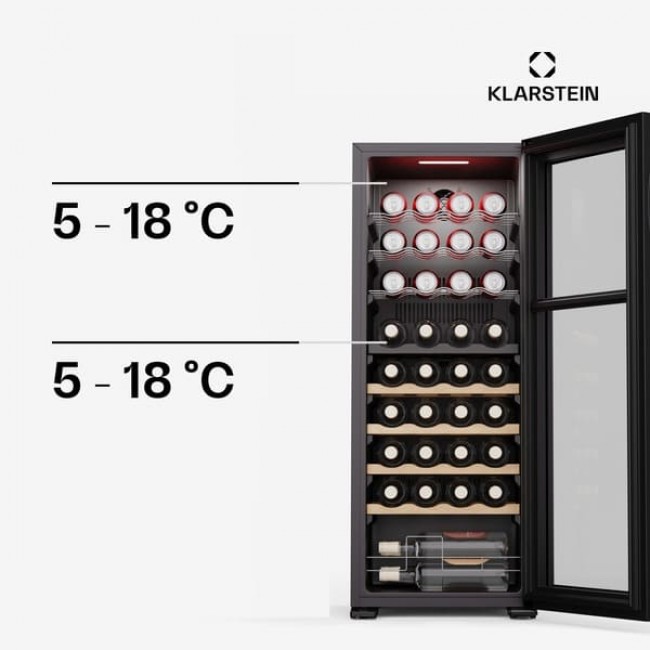 Відчуйте оптимальне зберігання ваших вин та напоїв за допомогою винного холодильника та охолоджувача напоїв Klarstein Bovella 36 Duo+ . Завдяки окремим зонам охолодження ви можете зберігати червоні, білі та ігристі вина за ідеальної температури.