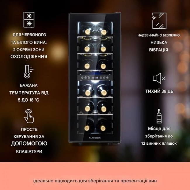 Для всіх поціновувачів вишуканих вин: винний холодильник Klarstein Shiraz 12 Duo пропонує стильне місце для зберігання та охолодження для вина, ігристого вина та інших напоїв.