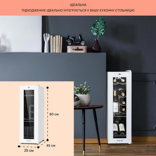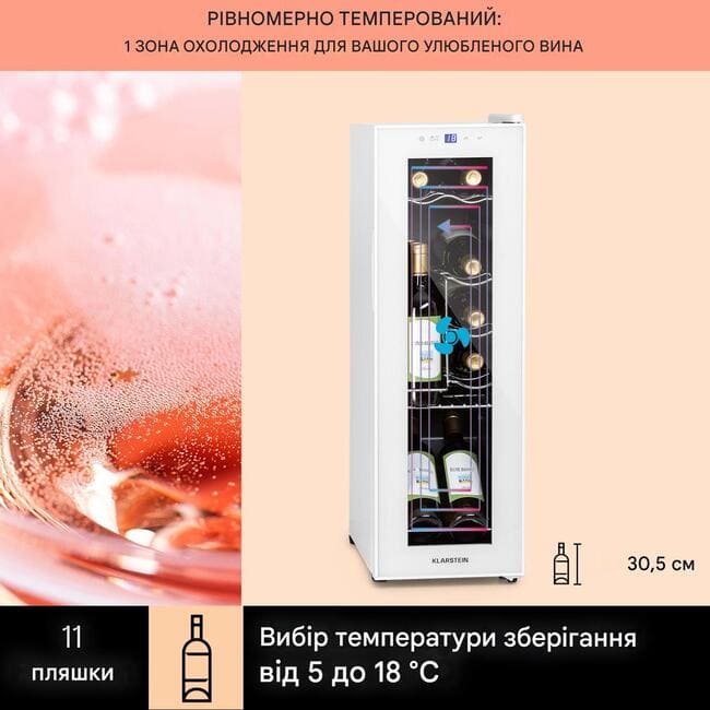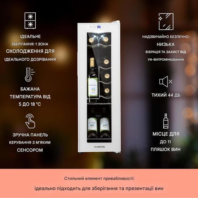 Для любителів і поціновувачів: винний холодильник Klarstein Shiraz 12 Slim Uno — це стильне місце для зберігання, яке забезпечує ідеальну температуру вина для пиття.