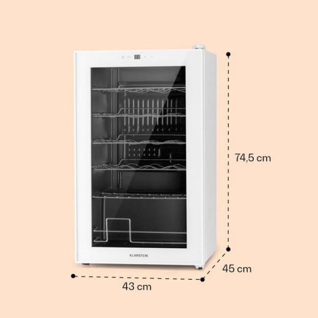Для любителів вина: Холодильник Klarstein Shiraz 24 Uno забезпечує найкращу насолоду вином, забезпечуючи пляшкам для вина потрібну температуру для пиття. У той же час він відрізняється своїм тонким дизайном і чудово вписується в невеликі приміщення. У ньому можна оптимально зберігати до 24 пляшок вина та охолоджувати їх до температури для пиття від 5 до 18°C. Передні дверцята із безпечного скла забезпечують чудову презентацію благородних пляшок.