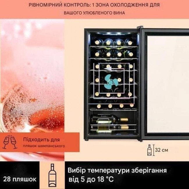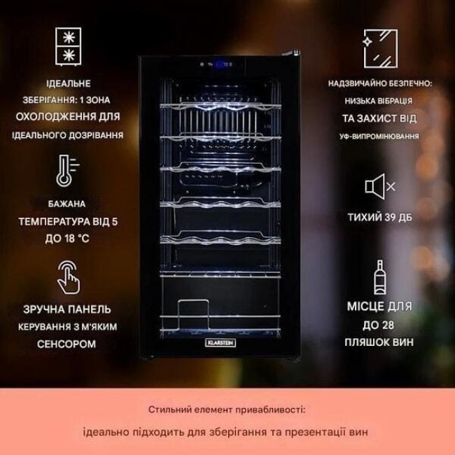 Для любителів та знавців: винний холодильник Shiraz 28 Uno від Klarstein – це стильне місце для зберігання вина, ігристого вина та інших напоїв.