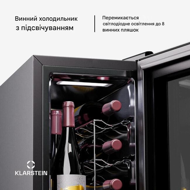 Будучи розумною, компактною моделлю початкового рівня, Klarstein Shiraz 8 Uno Vertical пропонує всі функції, необхідні для хорошого винного холодильника . Світлодіодний дисплей, внутрішнє освітлення, точне охолодження: все продумано.