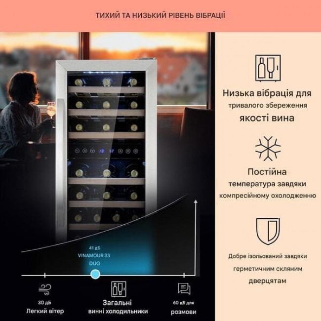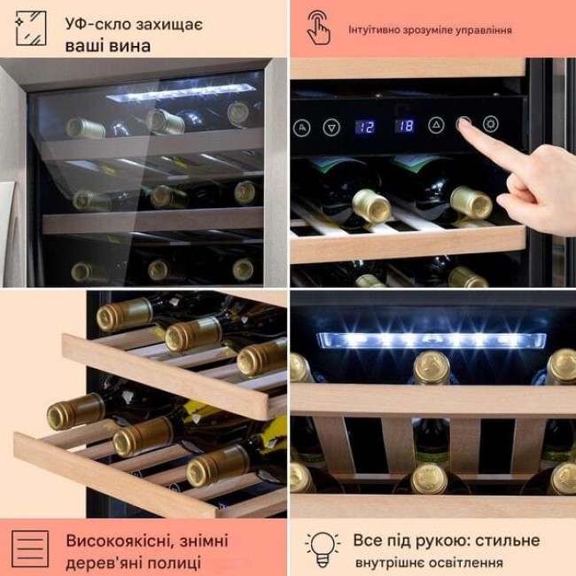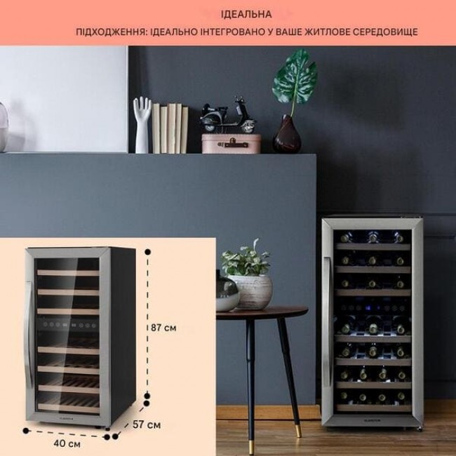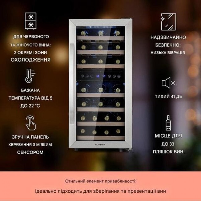 Для любителів вина: холодильник Klarstein Vinamour 33 Duo пропонує стильний простір для зберігання та ідеальне охолодження вина, ігристого вина та інших напоїв.