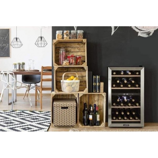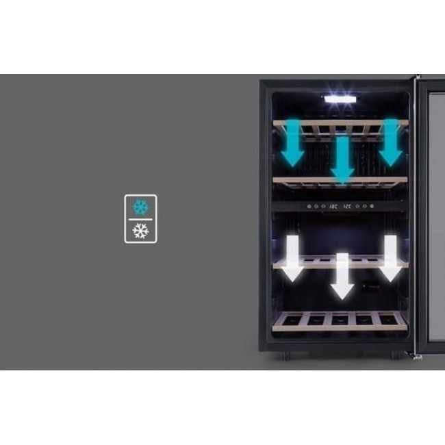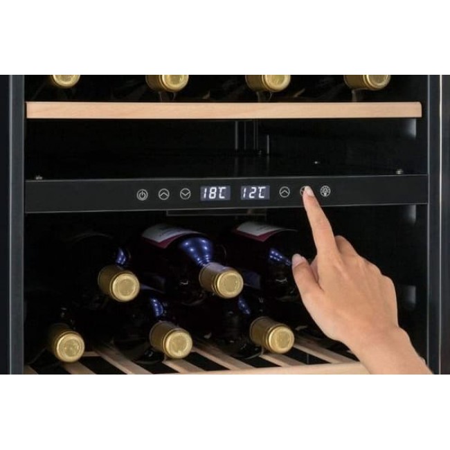 Вино необхідно охолодити до потрібної температури, щоб повністю розкрити його аромат. З охолоджувачем для вина Klarstein Vinamour 45D це дуже просто - з двома зонами охолодження і з благородною атмосферою. Володіючи об'ємом 118 літрів, він вміщує до 45 пляшок вина і охолоджує їх або до 5-12 ° C у верхній зоні, або від 12 до 18 ° C у нижній зоні охолодження. Ідеальні умови для одночасного зберігання готових до вживання червоних і білих вин. Обидві зони налаштовуються з точністю до градуса за допомогою інтуїтивно зрозумілою сенсорної панелі управління.