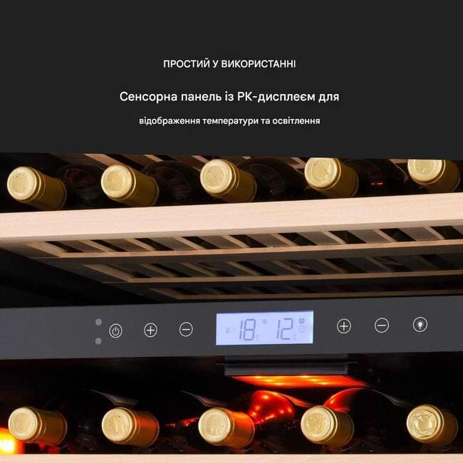 Дві зони: окремо регульована температура від 5 до 18 °C