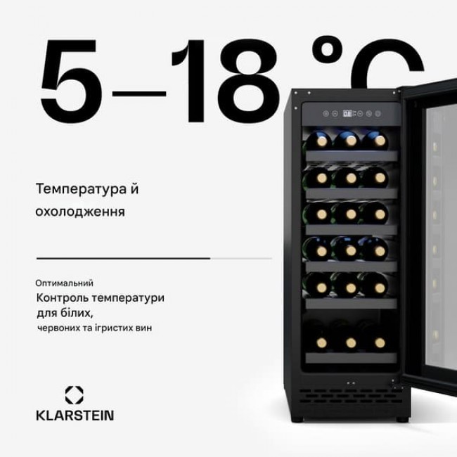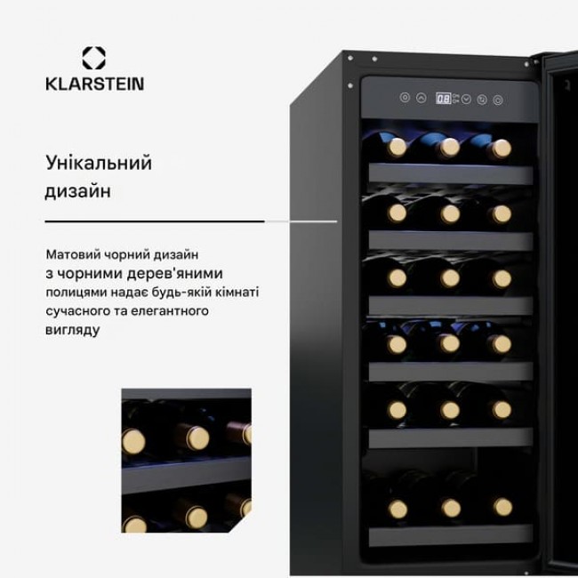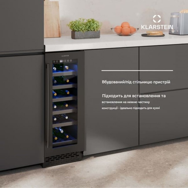 Побалуйте свої вина ідеальним зберіганням та створіть стильну родзинку на вашій кухні – з винним холодильником Klarstein Vinovilla 18 Uno !